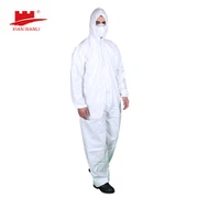 Quần yếm bảo vệ dùng một lần, Còng và mắt cá chân có dây kéo phía trước, Bộ quần áo liền quần cách ly vi mô có mũ trùm đầu